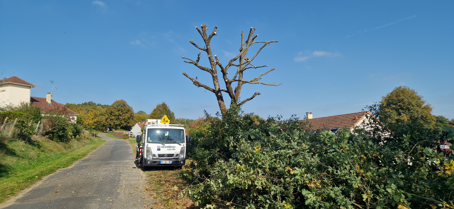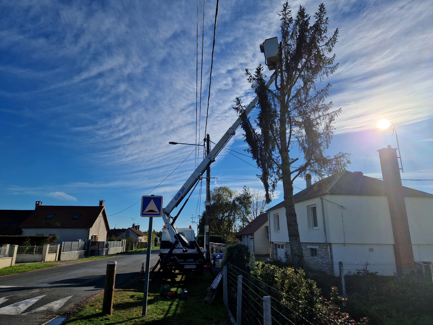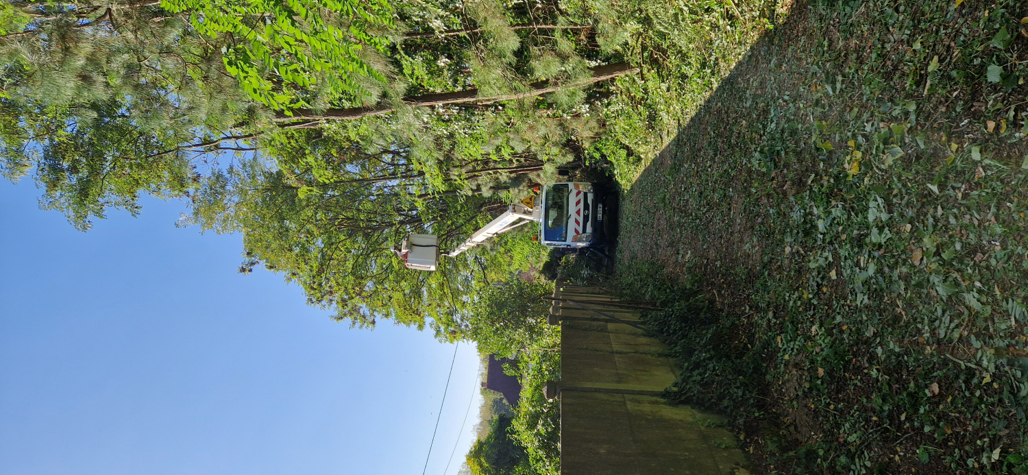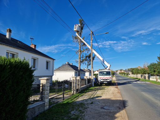 Travaux avec nacelle pour dégager les fils éléctriques 41