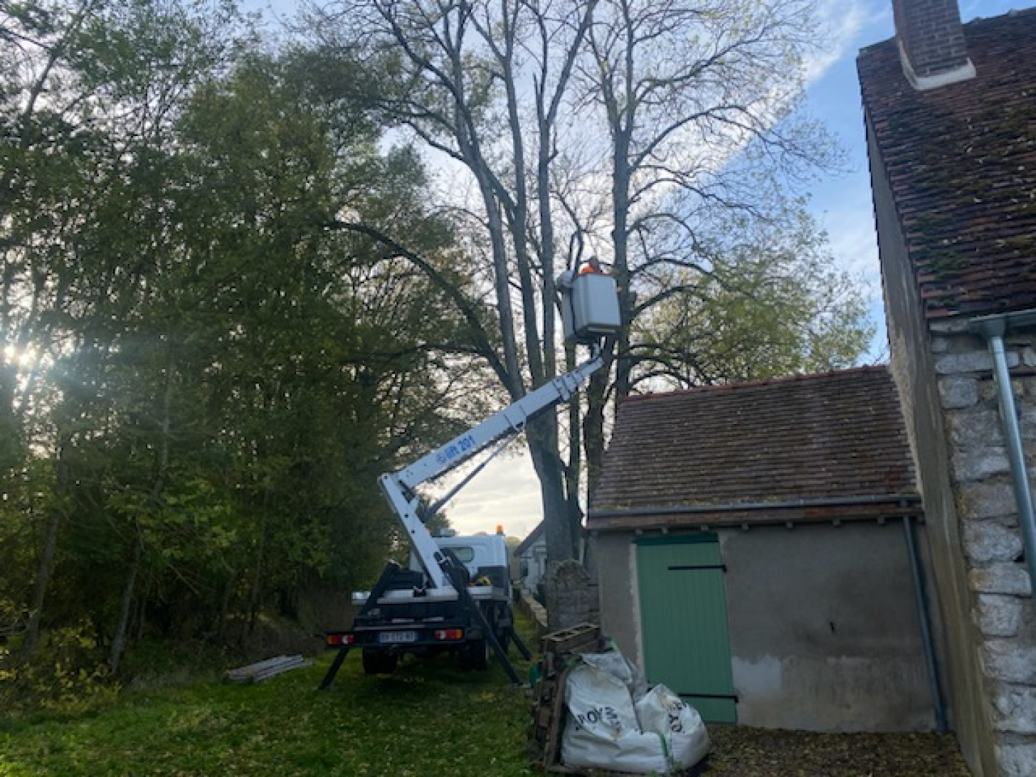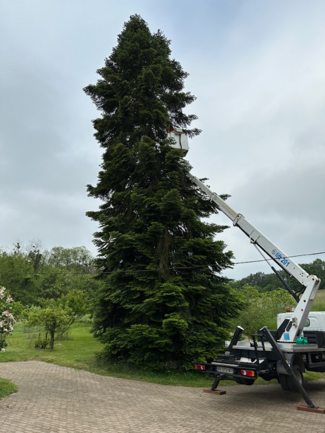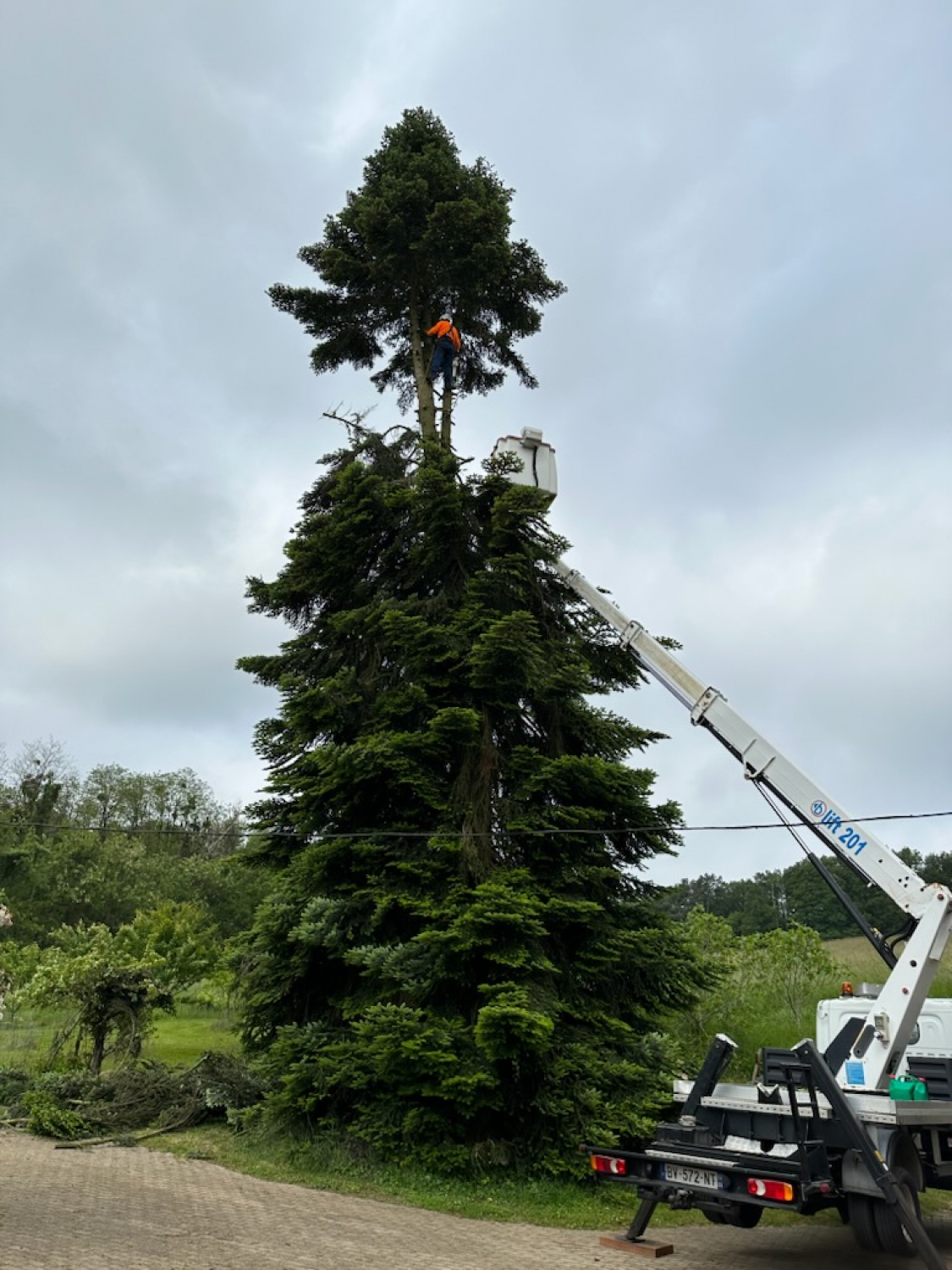 Travaux avec nacelle pour dégager les fils éléctriques 41